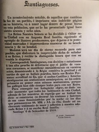 El periódico de la Corte “La Iberia” en su número 552 correspondiente al 25 de Abril de 1856, en su página 4 insertaba la siguiente noticia: