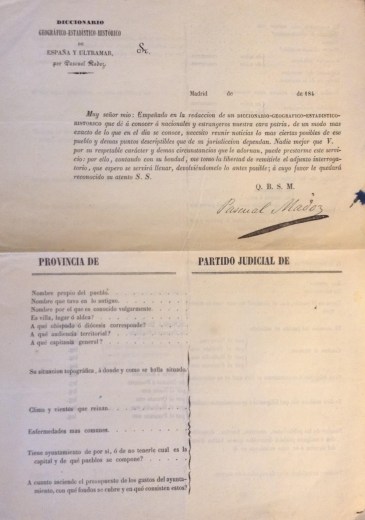 Cuestionario para la Formación del Diccionario de Madoz (Archivo Fundación Domingo Fontán)