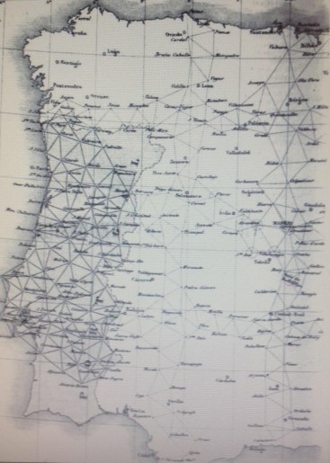 En su consecuencia, el citado mapa recoge la triangulación de Portugal que se inició durante el reinado de María I y Juan VI, de manera que a finales del Siglo XVIII abarcaba ya una gran parte del territorio nacional, según afirma José Murugan y Martín en su “Descripción Física, Política y Estadística y Literaria del Reino de Portugal y de los Algarbes”, Tomo II, página 366, Madrid, Imprenta Real 1833 y la Triangulación del Pirineo tomada de la triangulación de 1er. orden de Francia iniciada en 1818 y concluida en 1845, según Nicolás Soraluce “Fueros de Guipúzcoa, página 175, Madrid 1866, Imprenta del Banco Industrial y Mercantil.